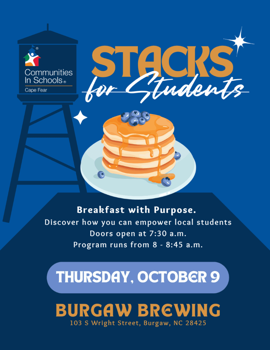You’re invited to learn how we can all work together to support students in our community, and enjoy a delicious breakfast at Burgaw Brewing.